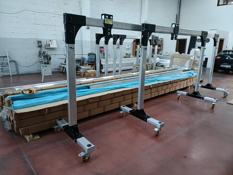 Telescopic pillars adjustable from 1600 to 2500 mm. Optional possibility of supplying a beam in two sections.